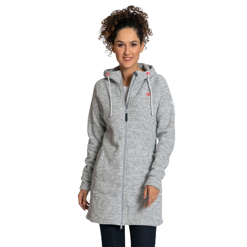 Der Elkline Durchgewärmt ist ein schicker Strickfleecemantel für Frauen. Mit seinem melierten Strickfleece sieht er urban aus und kann sowohl bei Wanderungen als auch im Alltag getragen werden.