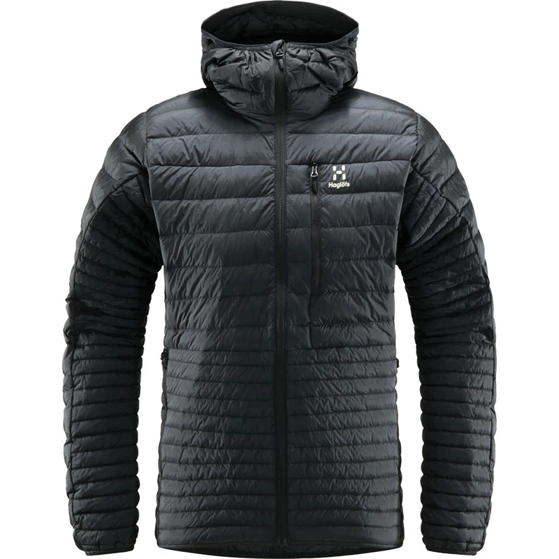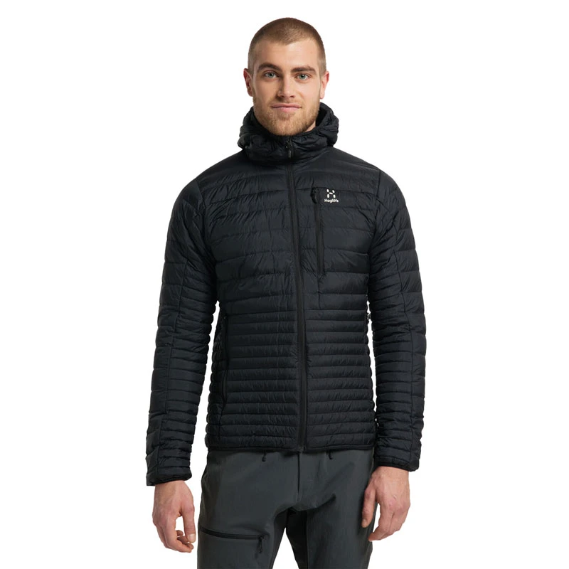 | Material: | 100 % Polyamid, 20D, daunendicht, Leinwandbindung, 44 g/m², bluesign®-zertifiziert. Isolierung: Haglöfs H DOWN Gold 700 CUIN Fillpower-Premiumqualität 85 % Daunen/15 % Federn |