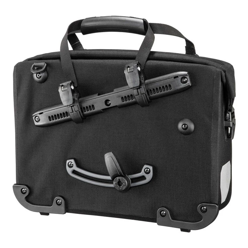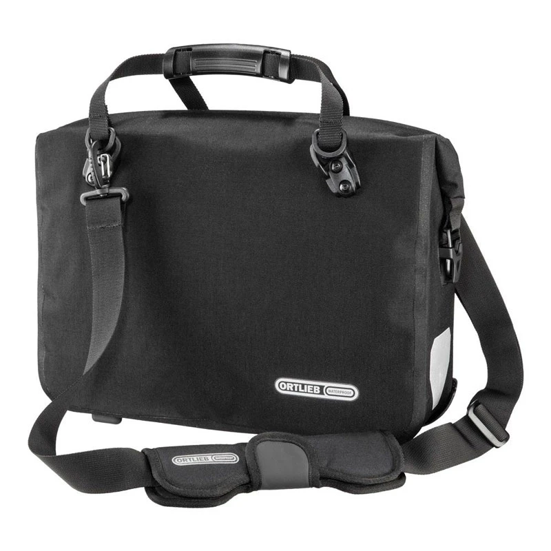 Die Fahrradtasche Ortlieb Office- Bag 13l, ist eine Aktentasche mit diagonaler Anbringung am Gepäckträger. Der wasser- und staubdichte Rollverschluss gewährleistet sicheren Transport von Dokumenten und Laptop zur Arbeit oder Uni, egal bei welchem Wetter! Zwei unterteilte Innentaschen sorgen für Ordnung und Übersicht. Mit einem Volumen von 13 schluckt die Tasche problemlos einen großen Ordner und 17 Zoll-Laptop, sowie die für den Schul- oder Berufsalltag.