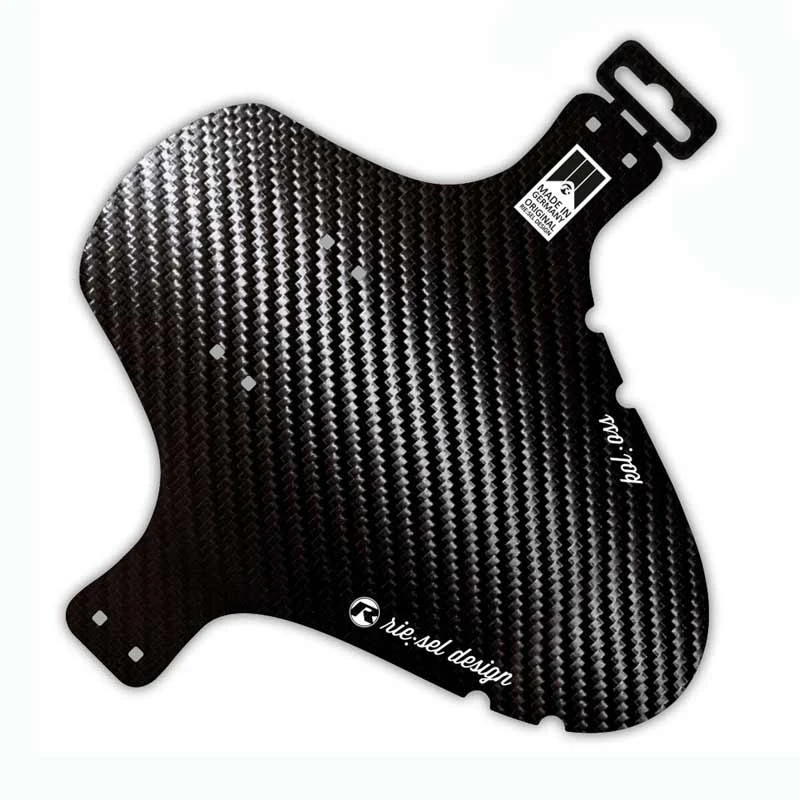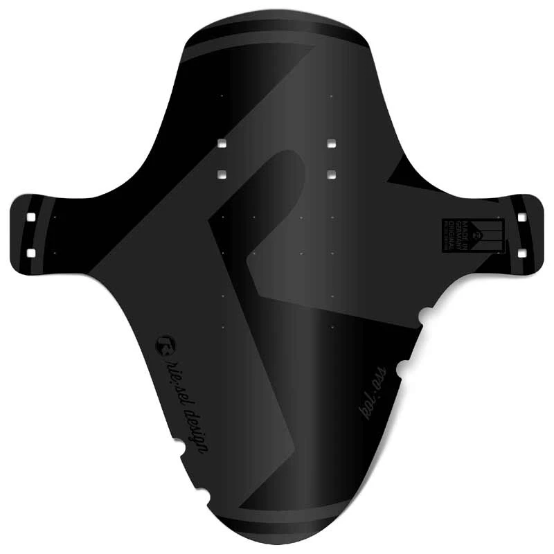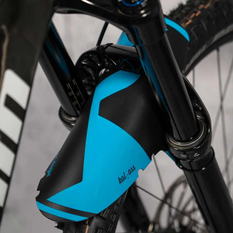 Der „koloss“ von riesel design ist der große Bruder vom Schutzblech „schlammPE“. Mit der längeren Nase an der Front bietet „koloss“ unter extremen Bedingungen freie Sicht. Befestigt wird das Schutzblech aus hochwertigem Kunststoff mithilfe von Kabelbindern zwischen den Tauchrohren und Gabelbrücke der Federgabel. Konzipiert wurde „koloss“ als Spritzschutz, um das Gesicht unter widrigen Bedingungen frei von Dreck, Schlamm und Wasser zu halten.