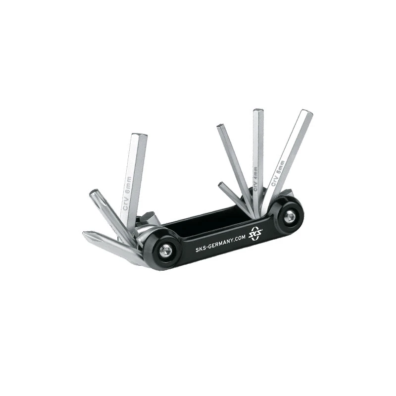 Das SKS Tom 7 Mini Tool ist ein kleines, leichtes Fahrradwerkzeug mit praktischer Neopren- Tasche. Mit den 7 integrierten Funktionen wie Inbusschlüssel, Schraubendreher und Torx-Schlüssel lassen sich viele Pannen am Fahrrad schnell beheben. Das Multifunktionswerkzeug kann in der mitgelieferten Neopren-Tasche praktisch verstaut werden.